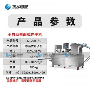 290IIAS卷面式包子機,可生產(chǎn)各種不同餡料的包子、各式包餡食品,如豆沙包、南瓜餅、肉包、小籠包、水晶包等幾十種包餡制品。適用于個體戶、食品廠、學校等單位食堂??蓾M足不同客戶群體。免費提供工藝技術(shù)。