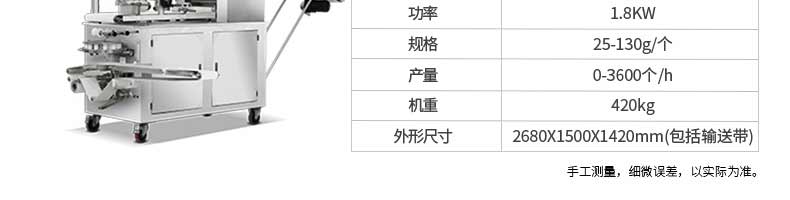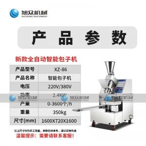 名稱86智能版包子機(jī) 電源220/380v 功率2.4kw 產(chǎn)量 尺寸1600*720*1600mm 重量350kg 規(guī)格20-150克/只 其他