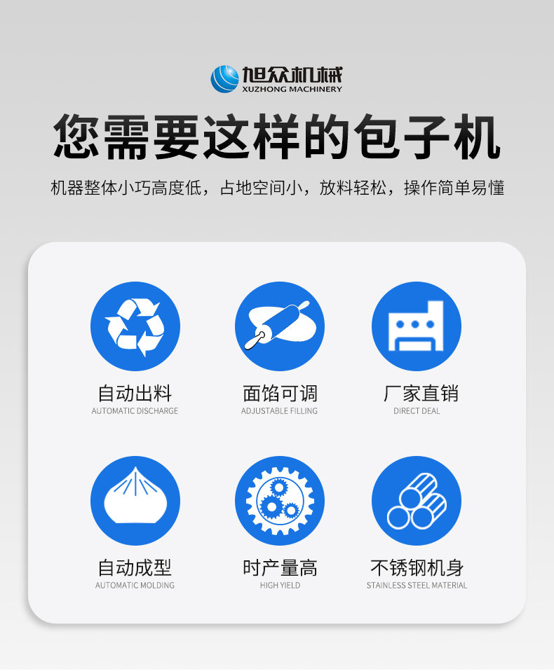 作者:旭眾機(jī)械發(fā)布時(shí)間:2021-04-26 17:44查看數(shù):您當(dāng)前的位置:首頁>>產(chǎn)品展示>>面制品加工系列>>包子機(jī)系列