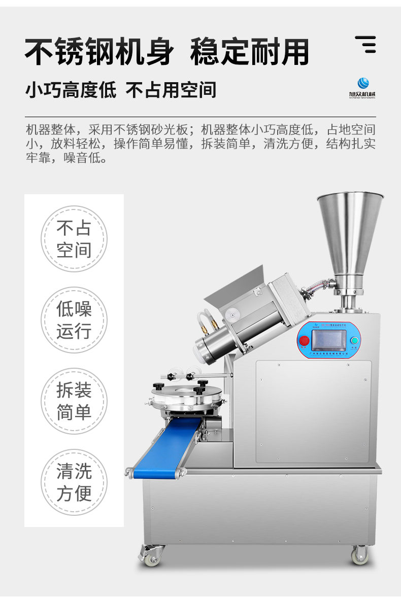 XZ-950型多功能包子機(jī),多功能包子機(jī),出面快速、不傷面筋。無需使用手壓面/推面,帶有自動恒溫制冷系統(tǒng),占地空間小,放料輕松。