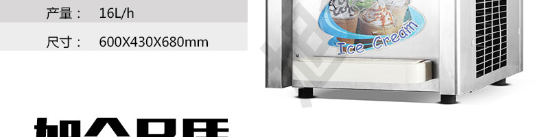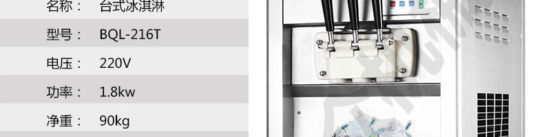 BQL-216T臺式冰淇淋機(jī),●選用國際名牌成熟制冷配套件和高效壓縮機(jī),融合旭眾精湛工藝輔以嚴(yán)格的質(zhì)量控制流程,使產(chǎn)品整體性能及品質(zhì)得以全面提升?!癫捎萌珨?shù)字電腦控制系統(tǒng),選用名牌優(yōu)質(zhì)電器元件,先進(jìn)的生產(chǎn)工藝,故障診斷,軟硬任意調(diào)制,自動修復(fù)功能,安全精確,可靠性更高。●專業(yè)成熟制冷系統(tǒng)設(shè)計,選用世界名牌大功率專用壓縮機(jī),大大縮短冰淇淋成型時間,相同時間內(nèi)冰淇淋產(chǎn)量大幅度增加,使您生意火爆時依然得心應(yīng)手,為您創(chuàng)造財富?!癜踩椒€(wěn)的機(jī)械攪拌系統(tǒng),噪音更低、振動更小,使整機(jī)運行性能達(dá)到國際先進(jìn)水平?!翊_保進(jìn)料溫度在0°C~35°C;環(huán)境溫度5°C~40°C勻可正常使用。