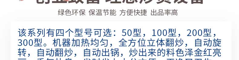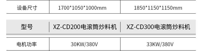 名稱電加熱滾筒式炒料機 電源 功率30kw/380v 產(chǎn)量50-150kg/h 尺寸具體看下面參數(shù) 重量300/350kg 規(guī)格 其他