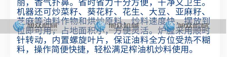 作者:旭眾機械發(fā)布時間:2018-10-11 08:30查看數(shù):您當前的位置:首頁>>產(chǎn)品展示>>油炸機和榨油機系列>>炒貨機系列