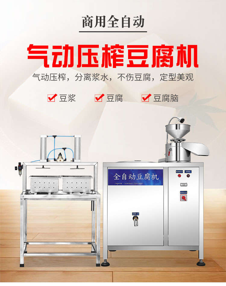XZ-100型全自動豆腐機,商用全自動氣動壓榨豆腐機氣動壓榨,分離漿水,不傷豆腐,定型美觀。