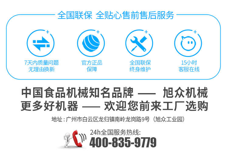 廣州旭眾食品機械有限公司是一家集科研開發(fā),生產(chǎn)設(shè)計,營銷服務(wù)為一體的現(xiàn)代化生產(chǎn)企業(yè)?,F(xiàn)代化生產(chǎn)車間,精湛制造技術(shù),所產(chǎn)機械歷經(jīng)市場重重考驗,不斷贏得海內(nèi)外客戶的贊譽。