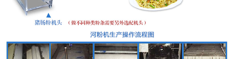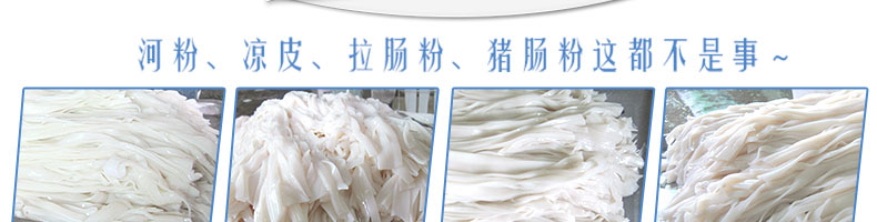 名稱SZ-HF-150高效節(jié)能河粉機 電源220/380V 功率0.75/41kw 產(chǎn)量60/90/120/150kg/h 尺寸主機尺寸3500*720*1050mm 外形尺寸3600*920*1500mm 重量320kg 規(guī)格粉條寬度mm:4/6/8/10 其他