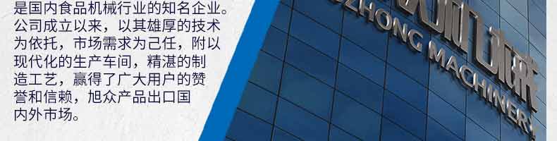 廣州旭眾食品機械有限公司是一家集科研開發(fā),生產(chǎn)設計,營銷服務為一體的現(xiàn)代化生產(chǎn)企業(yè)?,F(xiàn)代化生產(chǎn)車間,精湛制造技術,所產(chǎn)機械歷經(jīng)市場重重考驗,不斷贏得海內(nèi)外客戶的贊譽。