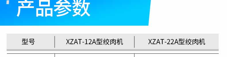 名稱XZAT-22A絞肉機 電源220V/50HZ 功率850W,1100W 產(chǎn)量250KG/h,300KG/h 尺寸395*360*375MM 重量25KG,28KG 規(guī)格 其他