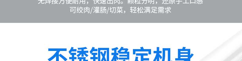 XZL-32A絞肉機(jī),快速絞肉它做得到。告別單一,多項(xiàng)功能,絞肉絞菜灌腸輕松搞定。機(jī)身小巧使用便利,是廚房的理想之選絞餡無壓力,適合餐廳,飯店,酒店等場所使用無焊接方便耐用,快速出肉。顆粒分明,還原手工口感可絞肉/灌腸/切菜,輕松滿足需求。