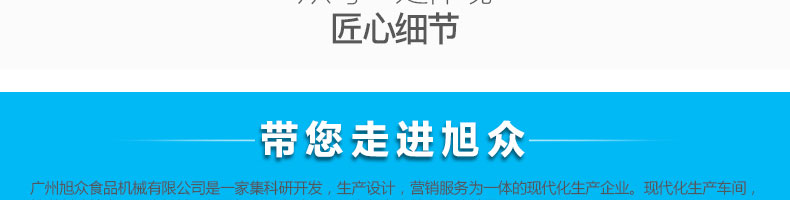 廣州旭眾食品機械有限公司是一家集科研開發(fā),生產(chǎn)設計,營銷服務為一體的現(xiàn)代化生產(chǎn)企業(yè)?,F(xiàn)代化生產(chǎn)車間,精湛制造技術,所產(chǎn)機械歷經(jīng)市場重重考驗,不斷贏得海內外客戶的贊譽。