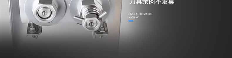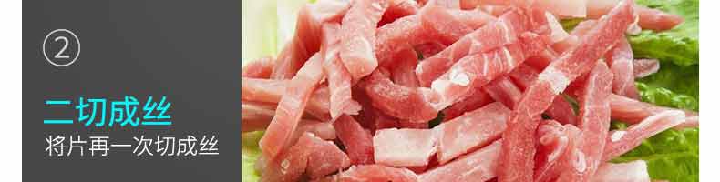XZ-QX320-切肉機(jī),小型切肉機(jī)是一款主要對(duì)肉類進(jìn)行加工的設(shè)備,配置單層刀具一次性切肉片,二次切肉絲,再切成料。刀具采取外置懸臂式設(shè)計(jì),拆洗方便,衛(wèi)生更有保障;配置多種刀具,可加工不同厚度的肉片,實(shí)現(xiàn)一機(jī)多用;機(jī)內(nèi)裝有安全保護(hù)開(kāi)頭,刀具外露時(shí),機(jī)器自鎖不能啟動(dòng),以保安全;卸下的刀具,不用清洗直接放置在6攝氏度以下的冰箱里,刀具余肉不發(fā)臭。刀片用特殊不銹鋼材料制造,經(jīng)久耐用。