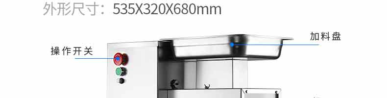 名稱XZ-QX320-切肉機(jī) 電源110/220V 功率0.55kw 產(chǎn)量250kg/h 尺寸450*320*430mm 重量33kg 規(guī)格 其他