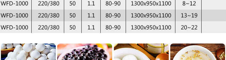 VFD-1000無餡湯圓機,本機可生產(chǎn)無餡湯圓、珍珠湯圓、桂花湯圓、奶茶所用的珍珠、檳榔紅丸、工藝品等。規(guī)格有8-34mm,可根據(jù)客戶要求定制。適用于個體戶、食品廠、學校等單位食堂??蓾M足不同客戶群體。免費提供工藝技術。