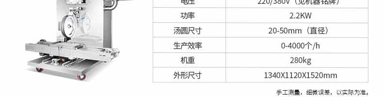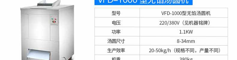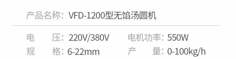 名稱VFD-1200無餡湯圓機 電源220/380V 功率0.55KW 產(chǎn)量50-100kg/h 尺寸1350*900*850mm 重量220kg 規(guī)格 其他
