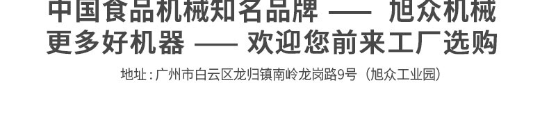 廣州旭眾食品機(jī)械有限公司是一家集科研開(kāi)發(fā),生產(chǎn)設(shè)計(jì),營(yíng)銷(xiāo)服務(wù)為一體的現(xiàn)代化生產(chǎn)企業(yè)?,F(xiàn)代化生產(chǎn)車(chē)間,精湛制造技術(shù),所產(chǎn)機(jī)械歷經(jīng)市場(chǎng)重重考驗(yàn),不斷贏得海內(nèi)外客戶(hù)的贊譽(yù)。