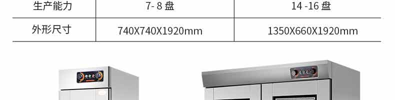 名稱(chēng)雙門(mén)蒸籠式醒發(fā)箱 電源220V 功率2KW,2.6KW 產(chǎn)量7-8盤(pán),14-16盤(pán) 尺寸740*740*1920mm,1350*660*1920mm 重量 規(guī)格 其他頻率:50HZ