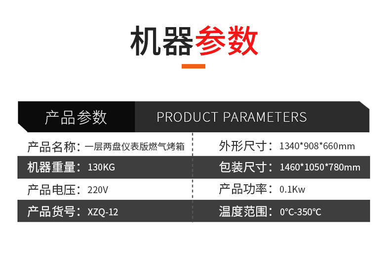 名稱一層兩盤儀表版燃氣烤箱 電源220V 功率0.1KW 產(chǎn)量 尺寸1340*908*660mm 重量130KG 規(guī)格一層兩盤 其他