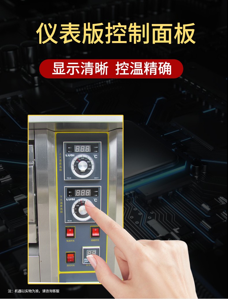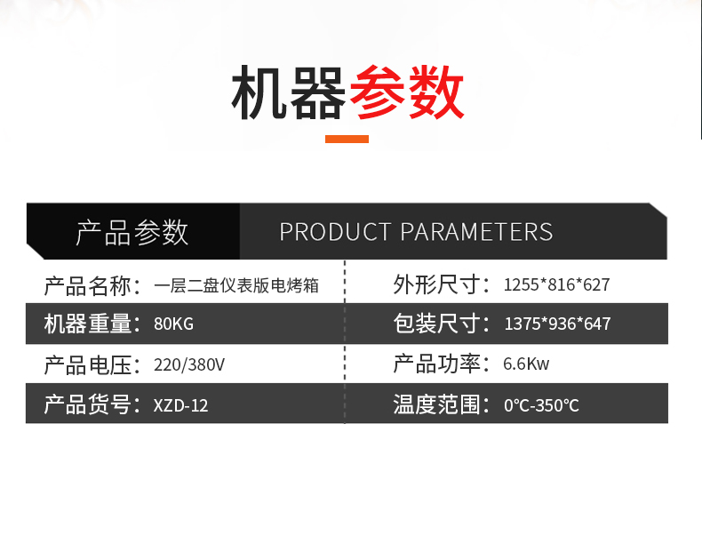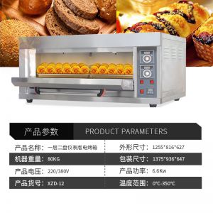 名稱一層兩盤(pán)儀表版電烤箱 電源220V/380V 功率6.6KW 產(chǎn)量 尺寸1255*816*627mm 重量80KG 規(guī)格一層兩盤(pán) 其他