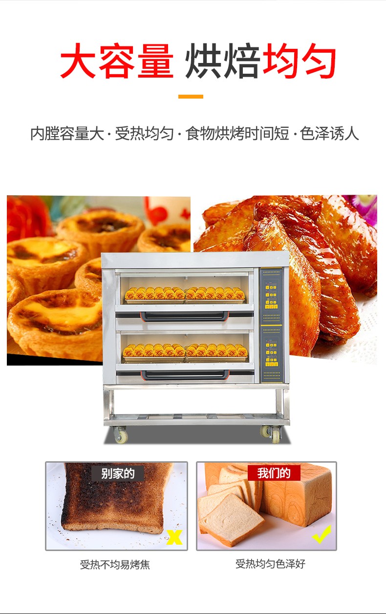 名稱二層四盤電腦版電烤箱 電源380V 功率13.2Kw 產(chǎn)量 尺寸1255*816*1295mm 重量120KG 規(guī)格兩層四盤 其他