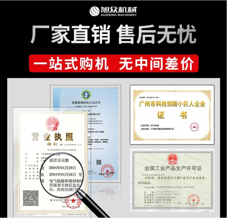 廣州旭眾食品機(jī)械有限公司是一家集科研開發(fā),生產(chǎn)設(shè)計(jì),營(yíng)銷服務(wù)為一體的現(xiàn)代化生產(chǎn)企業(yè)?,F(xiàn)代化生產(chǎn)車間,精湛制造技術(shù),所產(chǎn)機(jī)械歷經(jīng)市場(chǎng)重重考驗(yàn),不斷贏得海內(nèi)外客戶的贊譽(yù)。