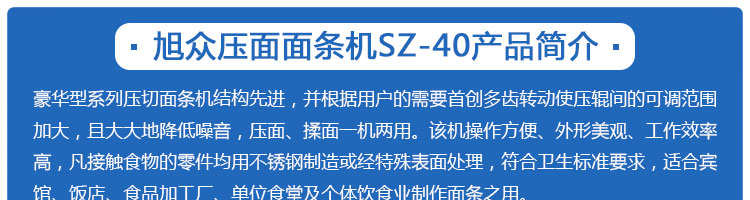 SZ-50、SZ-70壓面面條機(jī)系列,本機(jī)壓面、揉面一機(jī)兩用,用于制作面條、云吞皮、糕點、面點等食品,生產(chǎn)的產(chǎn)品韌性大、耐煮、不易斷,適合于賓館、飯店、食堂、面包廠及各類面點加工單位或個體商戶使用。