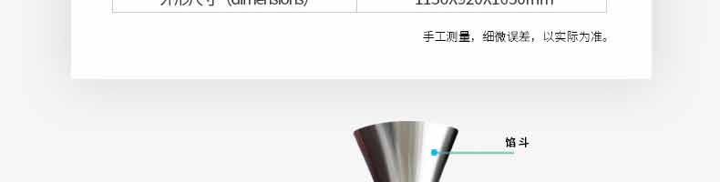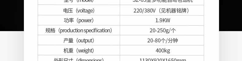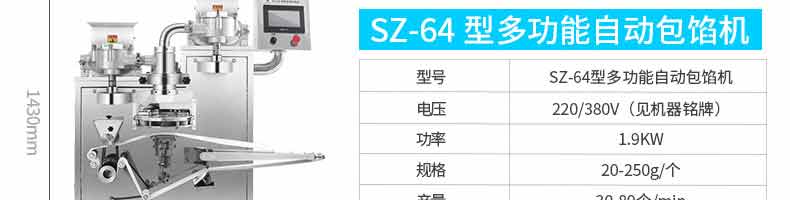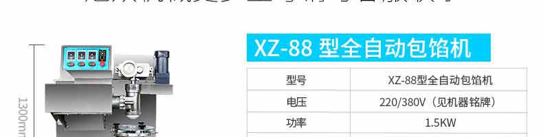 名稱XZ-65多功能包餡機(jī) 電源220/380V 功率1.9kw 產(chǎn)量20-80個(gè)/分鐘 尺寸1130*920*1650mm 重量400kg 規(guī)格20-250克/個(gè) 其他皮餡比例2:8 5:5