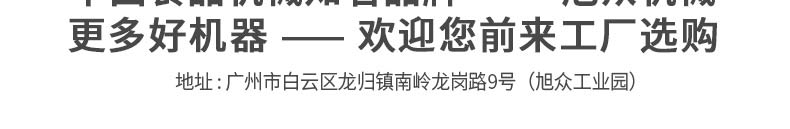 廣州旭眾食品機(jī)械有限公司是一家集科研開發(fā),生產(chǎn)設(shè)計(jì),營銷服務(wù)為一體的現(xiàn)代化生產(chǎn)企業(yè)。現(xiàn)代化生產(chǎn)車間,精湛制造技術(shù),所產(chǎn)機(jī)械歷經(jīng)市場重重考驗(yàn),不斷贏得海內(nèi)外客戶的贊譽(yù)。