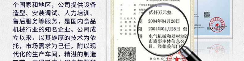 廣州旭眾食品機械有限公司是一家集科研開發(fā),生產(chǎn)設(shè)計,營銷服務(wù)為一體的現(xiàn)代化生產(chǎn)企業(yè)?,F(xiàn)代化生產(chǎn)車間,精湛制造技術(shù),所產(chǎn)機械歷經(jīng)市場重重考驗,不斷贏得海內(nèi)外客戶的贊譽。